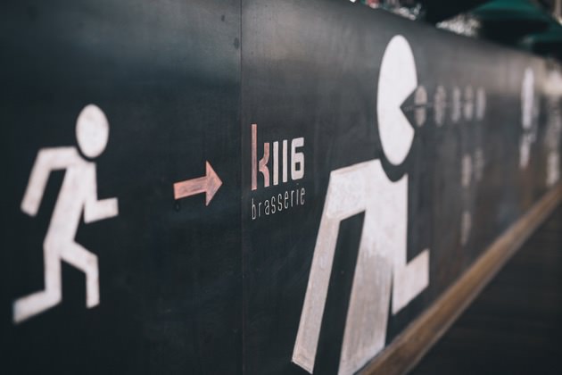 La Brasserie K116 se situe dans les bâtiments de l’ancien abattoir d’Esch-sur-Alzette (*1885). Les bâtiments sont témoins d’une architecture de la fin du 19ème siècle et propose une ambiance industrielle très tendance. Les détails de ce que fut le site y sont respectés, jusqu’aux rails de plafond où étaient suspendues les carcasses de bavons. C’est dans ce lieu original et atypique que se rencontrent les spectateurs, animateurs et acteurs de la Kulturfabrik, prenant un verre ou repas avant ou après les spectacles.